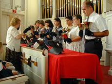 A group of young people (5th through 7th grade) who provide music for the church service approximately once a month. Choir Chimes is a wonderful opportunity for beginning "ringers". You do not need to read music to be in Choir Chimes and it is a wonderful opportunity to learn beginning ringing. For more information, please e-mail the Bell Choir.